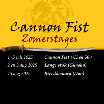 Zin in een nieuwe sportieve uitdaging? Geïnteresseerd in Oosterse meditatie en gevechtskunst? Wil je eens grondig kennismaken met een toegankelijke interne Kung Fu Stijl tijdens een hele week? Schrijf je in voor de Cannon Fist Zomerstages van 2025 van 1 tot 5 juli 2025. Cannon Fist is een onderdeel van de snelle set van Chen … More Cannon Fist Zomerstage 2025