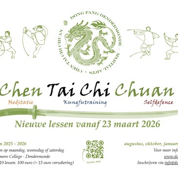 Vanaf   maandag 23 woensdag 24 en zaterdag 26 maart 2026  starten we met nieuwe lessenreeks voor beginners in de Chen stijl. Je kan als ‘absolute beginner’ lessen volgen op maandag-, woensdagavond of zaterdagochtend, of combineren. Voor maandagavond (de milde training) zijn de plaatsen beperkt tot 7 deelnemers. Deze groep is open voor alle leeftijden.  Woensdag … More Nieuwe lessenreeks vanaf 23 maart 2026